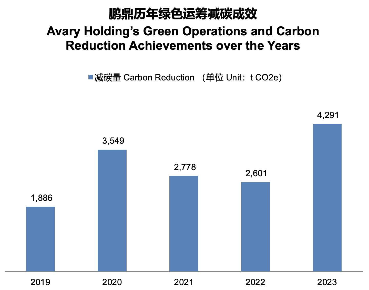 In 2023, the Shenzhen Park, Qinhuangdao Park and Huai'an Park of Avary Holding has reduced the overall number of trips by a total of 13,100 vehicles, saved a total of 1,788,060liters of diesel and gasoline consumption and reduced emissions by 4,291.4 tons of CO2e by integrating freight demand.